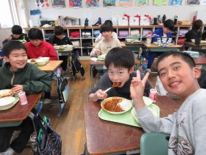 5年1組の給食のようすです!
