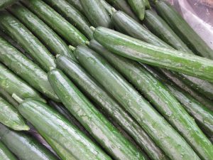 山梨県産の「きゅうり」です。きゅうりの入った袋にかわいいシールが貼ってありました。そして、今日は「きゅうり」を厚めに切りました。