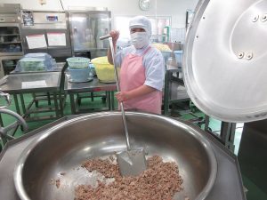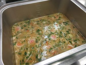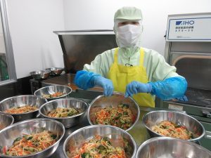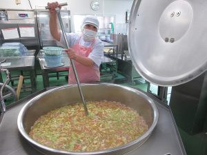 「きゅうりの漬物」が希望でしたが、給食風にアレンジした漬物風の和え物にしました。野菜はしっかり漬け込んでつくりました。