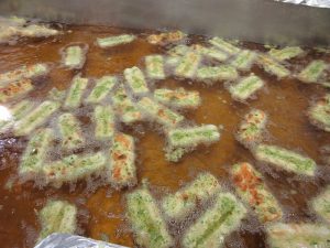 揚げるとちくわが膨らみます。