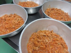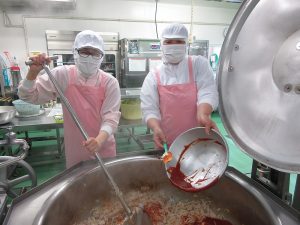子どもたちの好きなケチャップ味の豚肉料理が出来上がりました!