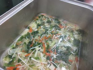 今日のスープは細切り野菜の「ジュリエンヌスープ」です。たっぷり野菜が入っています。