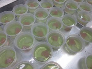 今日のデザートはハートの入った「青りんごゼリー」です。