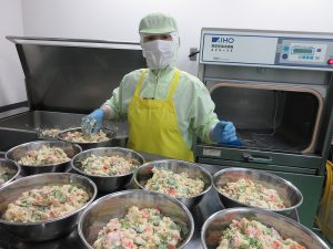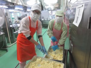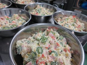 「ポテトサラダ」はゆでたじゃがいもをマッシュして冷却します。野菜とマヨネーズソースで和えて、クリーミーに仕上げました。
