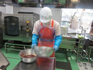 特製ヤンニョムソースをつくります。トマトケチャップに、コチュジャンとはちみつがたっぷり入っています。