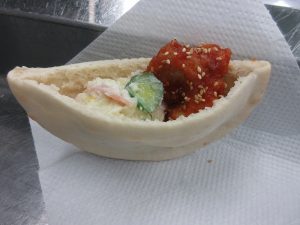 献立は、セルフケバブサンド ヤンニョムチキン ポテトサラダ 鶏肉とフォーのスープ 牛乳でした。