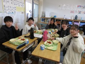 残さず、たくさん食べるクラスでした。これからも食べることを大切にして、元気に青春時代を楽しみながら、心も体も成長してほしいと思います。