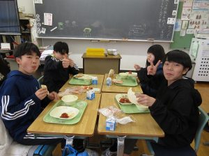 6年2組の給食の様子です!