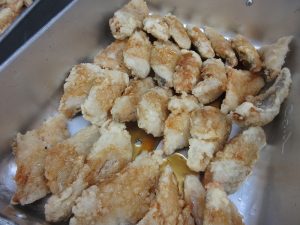 レモン果汁の入った甘いしょうゆだれをかけて出来上がりです。
