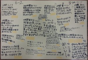 給食のワゴンに給食室へのメッセージが置いてありました。心のこもった楽しそうなメッセージに感謝です!