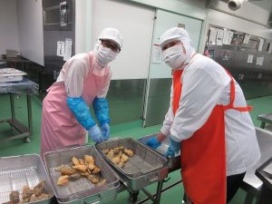 今日の給食は、揚げると皮まで食べられる魚料理です。