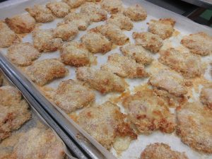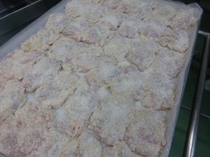 この鶏肉に、マッシュポテトをまんべんなくまぶします。