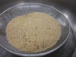 「スパゲッティソテー」は、固めにスパゲッティをゆでます。