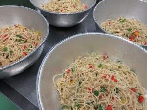 赤・黄・緑のカラフルなスパゲッティソテーが出来上がりました。