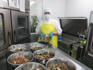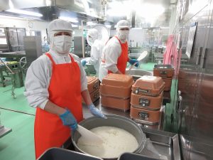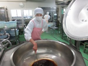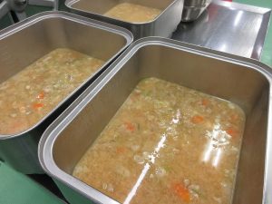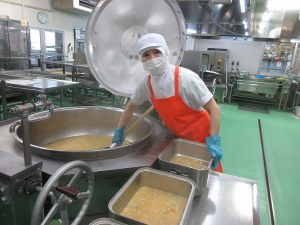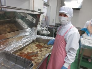 今日の給食は、揚げた白身魚にしょう油ベースのねぎソースをかけました。