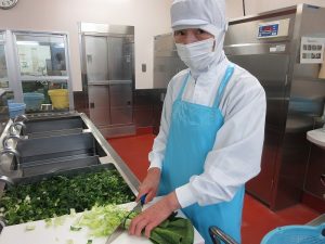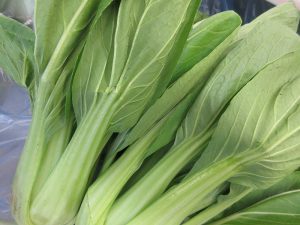 今日は新鮮な葉物野菜「チンゲン菜」と「小松菜」を使いました。緑色が鮮やかです!