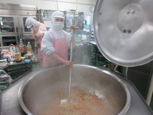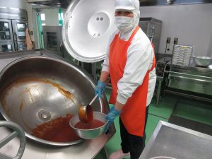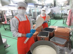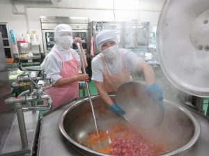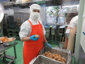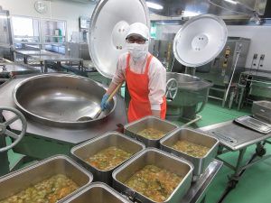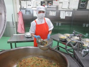 今日の給食は、ごはんがすすむおかずメニューです。