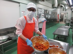 献立は、ごはん 鶏肉のチリソースかけ 野菜のチャプチェ サンラータン 牛乳(ミルクメークいちご)でした。