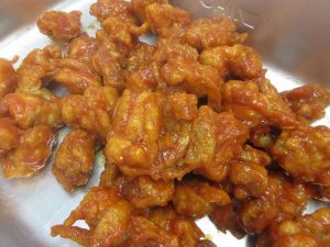 揚げた鶏肉にこのチリソースをからめて出来上がりです。