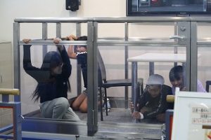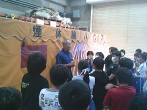防災安全センターでは、お話を聞き、地震体験と煙体験を行いました。