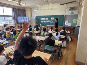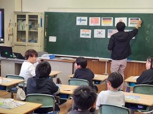外国語活動 2026年04月24日 3年生になって外国語活動がはじまりました。 ALTの発音を聞きながら一生懸命繰り返し練習していました。 国の名前やあいさつにふれ、文化の違いを少し感じていました。 これから、友達やALTとの会話を通して、楽しく外国語活動の学習を進めていきます。 3年生,学校からのお知らせ