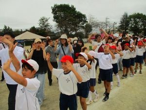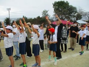 運動会⑩ 北小ぼんおどり(全校) 2025年10月07日 運動会最後の種目は全校による表現です。パプリカの曲合わせて和太鼓のリズムで盆踊りをしました。児童だけでなく保護者や地域の方も参加し、学校と地域が一体となって大きいな円を作って踊る姿が壮観でした。 学校からのお知らせ
