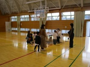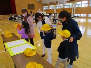 10月24日(金)に就学時健康診断が行われました。これは毎年、来年度入学予定の児童を対象に行っているもので、内科検診や視力検査、発達検査などを行いました。体育館では黄色い帽子のサイズ確認なども行われ、新しい帽子の感触に期待をにじませていました。