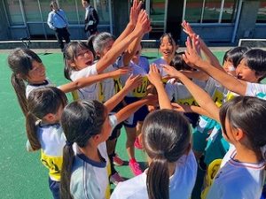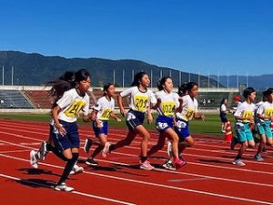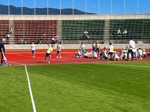 10月28日(火)に市内小学校の陸上記録会が小瀬スポーツ公園スタジアムで行われました。これは甲斐市内の小学校11校が毎年合同で行っているもので、各校で練習した成果を競い合いました。これまでの放課後練習の成果を発揮して上位入賞を目指しましたが、一緒に競技に参加した他校の児童との交流も深めていました。