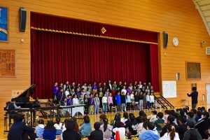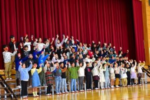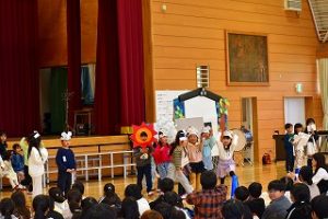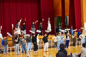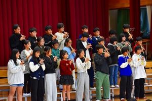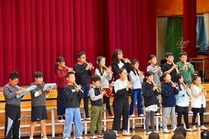 11月6日(木)に音楽発表会が開催されました。オープニングでは和太鼓クラブが「パプリカ」の演奏を披露され、力強い音色が会場に響き渡りました。学年の発表では各学年の練習の成果が発揮されました。低学年のかわいい振り付けに自然と手拍子が沸き起こり、中学年のパワフルな合唱には会場が一気に熱気を帯び大きな拍手が送られ、さまざまな楽器を使った高学年の演奏には圧倒される児童の様子が見られました。どの子も一生懸命頑張ったすてきな発表会になりました。また休憩時間にはサプライズで職員バンドも登場し、あんパンマーチでは立ち上がって踊る児童もいたりと盛り上がりを見せました。