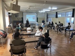 12月9日(火)の3~6校時にアイやまなし人材育成協会の方にお越しいただき、6年生を対象としたプログラミング教室が開かれました。5,6校時には甲府工業高校電子科の学生さんにもお手伝いいただきました。
