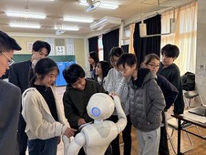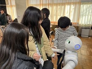 各自のクロームブックを使用しペッパー君の動きや言葉を決めました。言わせたいセリフをアプリのブロックに入力し、ペッパー君に送ります。相手はロボットのため、話す・聞くを切り替えるための指示も必要なことがわかりました。思い通りに会話ができないときは不具合を確かめて、何度もチャレンジしていました。ペッパー君で野球やおみくじができることも知り、人工知能の技術の高さに驚いている様子でした。
