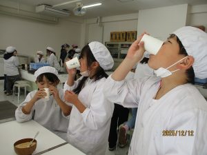 完成したきなこは、白玉にかけて味わいました。「砂糖を入れていないのに甘い」と驚く声も聞かれ、大豆本来の甘さを感じることができたようです。活動後には、大豆の他の変身も試したいという声が上がり、学習への意欲がさらに高まりました。