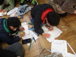 親子それぞれで色や柄が異なり、世界に一つだけのこまが完成しました。思い出に残る時間となりました。