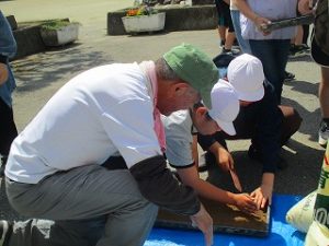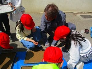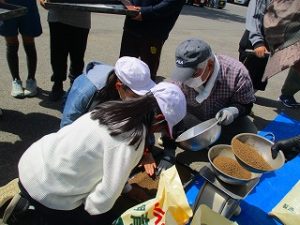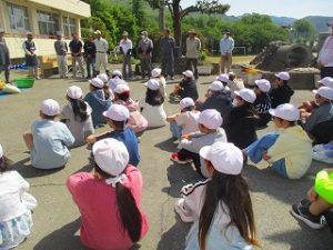 おやじの会の皆さんに教えて頂きながら、5年生がお米の種まきにチャレンジしました。