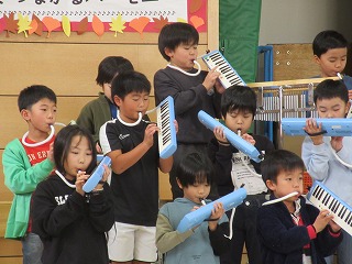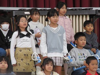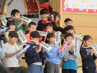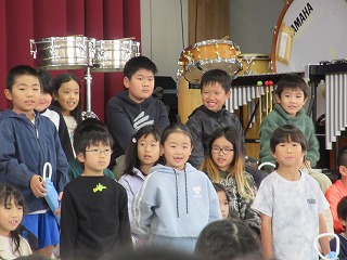 【2年生】音楽会ありがとうございました♪ 2025年11月27日 11月12日(水)、わくわくドキドキな気もちで音楽会を迎えました。2年生は、トップバッターの発表で、緊張した顔が見られましたが、本当に一生懸命頑張りました。呼びかけ、鍵盤ハーモニカ、打楽器隊、合唱、全て100点の発表でした! 2年生