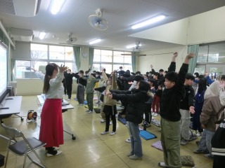 【5年生】鈴木春花さんによる特別授業がありました 2026年02月25日 フリーアナウンサーとして活躍されている鈴木春花さんによる授業がありました。 実際に鈴木さんが毎日されているトレーニングを一緒にやったり、校歌の群読を行ったりしました。 学校からのお知らせ