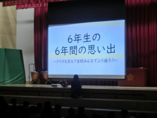 一緒にゲームをしたり、スライドで6年生の思い出をふり返ったり、プレゼントを渡したりしました。