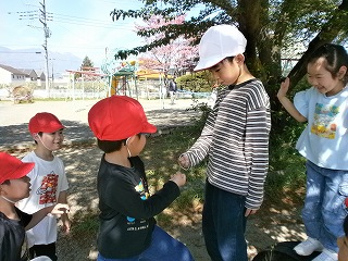 入学してから、1週間ほどが経ちました。新しい環境で不安もある中、毎日一生懸命に取り組んでいます。学校生活では、外遊び、中遊び、友だちとの交流を楽しみ、ニコニコな姿が見られます。