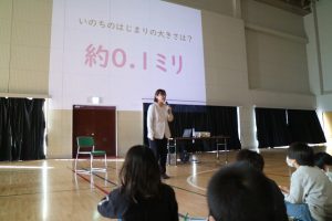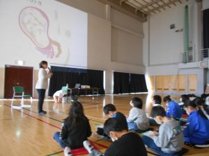 助産師の栗林千明さんを学校にお招きし、「生命の誕生から成長の過程」をテーマに、4年生が親子学習会を行いました。