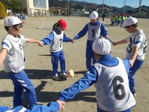 プレジール敷島のみなさんを講師にお迎えし、「総合型地域スポーツクラブによる子どもの運動推進事業」を行いました。今回は4~6年生が、足を使ったからだづくりに挑戦しました。