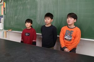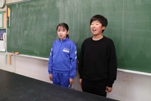 レンズの向こうに全校児童がいることを意識し、カメラの前で凛々しく決意を語る代表児童たち。その堂々とした姿は、画面越しでも頼もしさが十分に伝わるものでした。