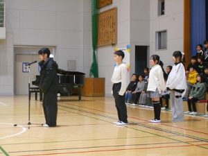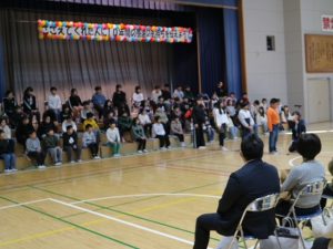「私たちは、夢に向かって努力を続けていきます。それぞれの大きな夢をめざしながら人としても成長していきたいです。」こんな言葉が体育館から聞こえきました。4年生が授業参観で行った「10年間の成長を祝う会」の一場面です。