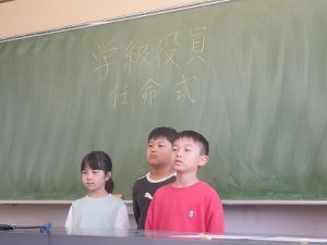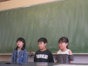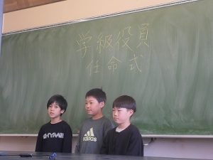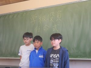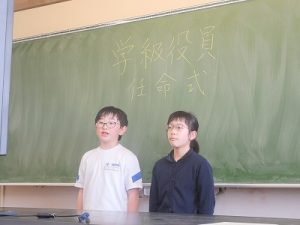 学級役員を中心に、互いを思いやり協力し合う温かな学級づくりが進むことを期待しています。一人一人の力を合わせ、笑顔あふれる、まとまりのある学級になるよう、これからの活躍が楽しみです。