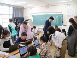 校内には温かな活気があふれ、子どもたちが生き生きと学ぶ姿をたくさん見ていただく機会となりました。どの学級でも、担任が学ぶ楽しさを引き出す工夫を凝らし、子どもたちは意欲的に学習に取り組んでいました。担任と子どもたちのよい関係の中で授業が進む様子とともに、多くの皆様に学校へ足を運んでいただいたことから、本校が保護者・地域に開かれた学校として歩んでいることも感じられる一日となりました。